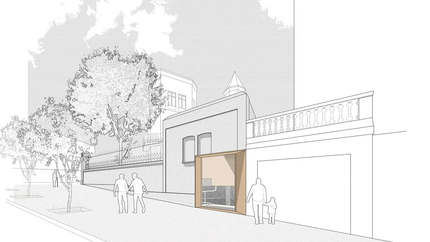 Esta propuesta permite la ampliación, el acceso y la visibilidad de la sala en la calle con una idea clara y con carácter, respetando, manteniendo y mejorando el patio existente y la Casa Lluvià.